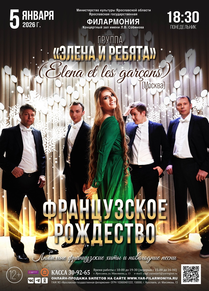 ✨ Рождественская сказка по-французски: приглашаем на концерт Elena et les garçons («Элена и ребята»)! 🎶🎄🎁 5 января 2026 года, в 18:30, ждем вас на незабываемое музыкальное путешествие во Францию вместе с талантливым мультиязычным коллективом Elena et les garçons. 🎅 В этот особенный вечер вас ждет эксклюзивная праздничная программа, где любимые французские мелодии переплетутся с чарующими новогодними песнями на самом романтичном языке мира. Перенеситесь мысленно в уютные парижские улочки, мерцающие огни, и звуки музыки, которые согревают душу. https://yar-filarmoniya.ru/afisha/view.php?af_id=5817