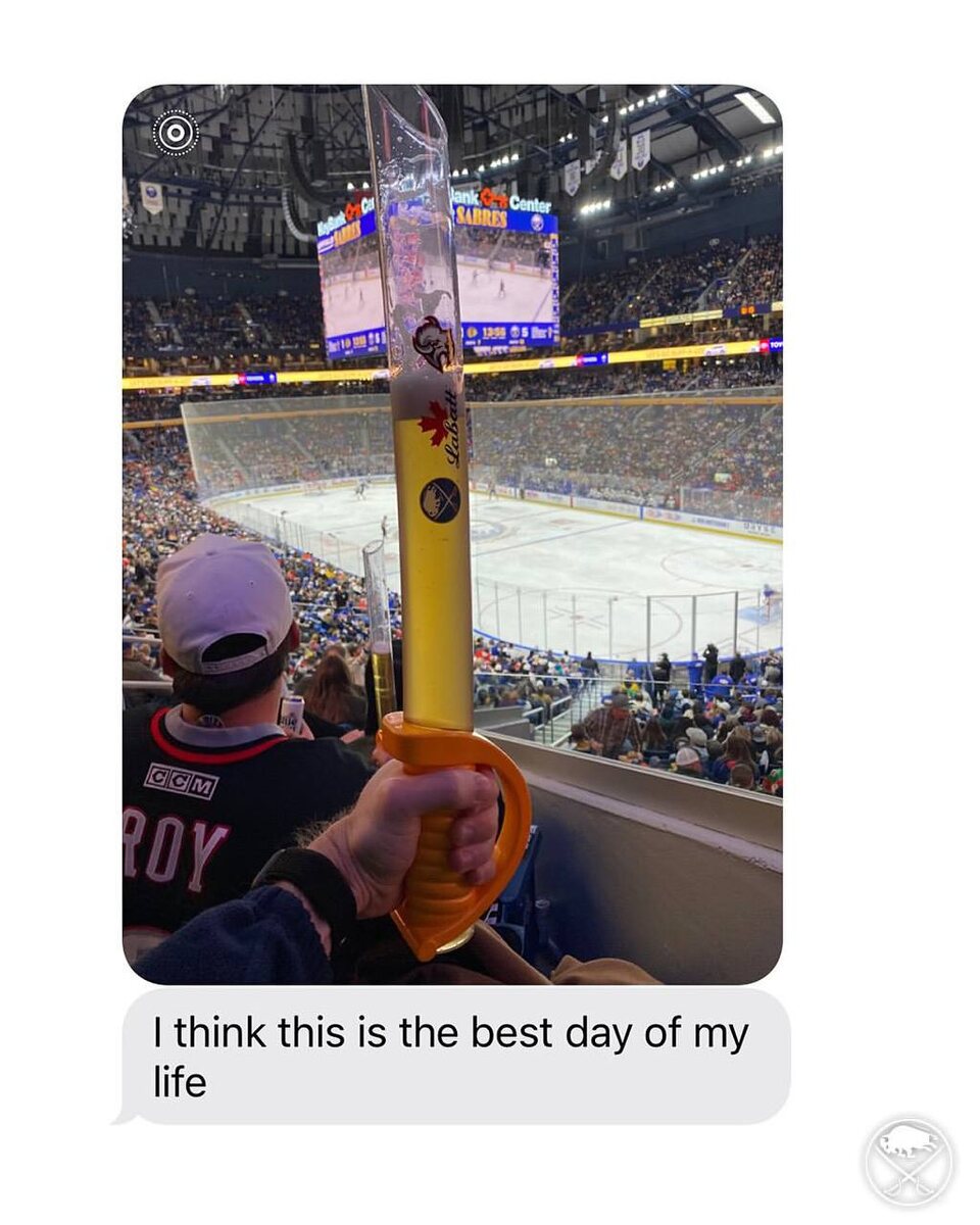✍️ Скрестить шпаги. На двух последних матчах «Баффало Сайбрз» в НХЛ болельщиков ждал не просто пивас, а пивас в саблях. Это прямая отсылка к названию и главному символу клуба, который решил замутить необычные бокалы вместе с брендом пива Labbat. Итог: болельщики смели все сабли на сувениры, большинство запостили фотки в соцсети, об акции написали большие медиа. Необычная подача еды и напитков – классика американского спорта. ПРО маркетинг в спорте