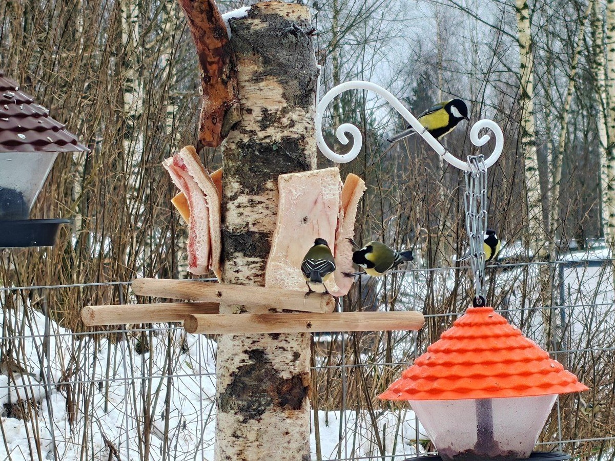 Итого на данный момент мы можем наблюдать: - три вида синиц (большая синица, лазоревка, пухляк гаичка) - полевых воробьев - соек - зеленушек Ждём новых