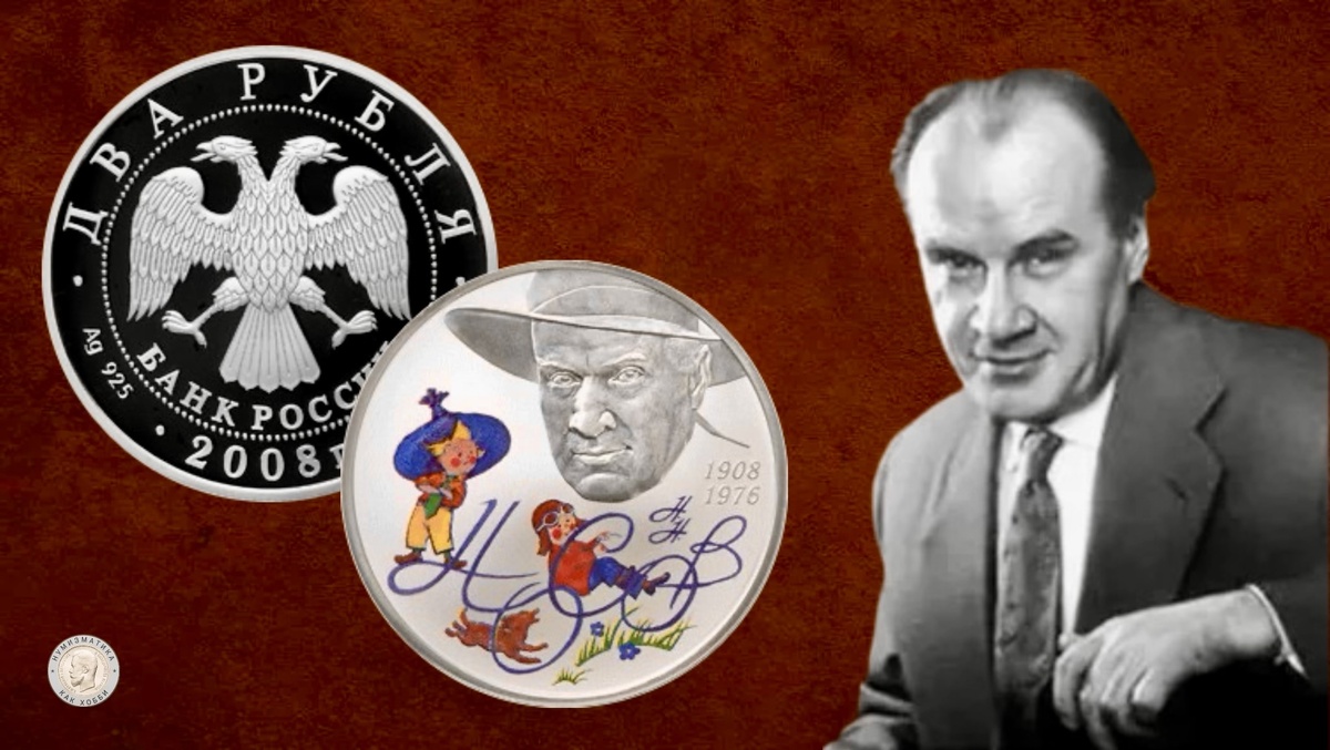 01 ноября 2008 года Банк России выпустил в обращение памятную монету номиналом 2 рубля «Детский писатель Н.Н. Носов - 100 лет со дня рождения (23.11.1908 г.)» серии «Выдающиеся личности России» (каталожный № 5110-0090).