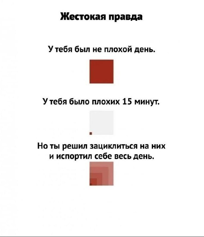 У кого так же? Я очень эмоционально отношусь к разному роду «плохих 15 минут» Сейчас, при помощи психолога, и простых способов учусь убирать фокус с негатива на позитив Мышца качается ооочень тяжко 🥶