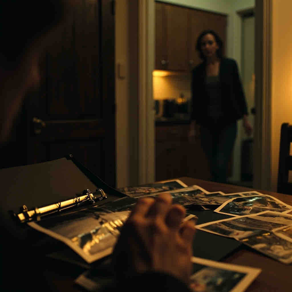 Она взяла фотографии в ладони, почувствовала их холод. Перелистывала, как календарь. На одном кадре — ее руки на перилах. На другом — фигура в окне, шторы, похожие на облака, которые не умеют решать. На третьем — чаевые под блюдцем, будто плата за секрет.