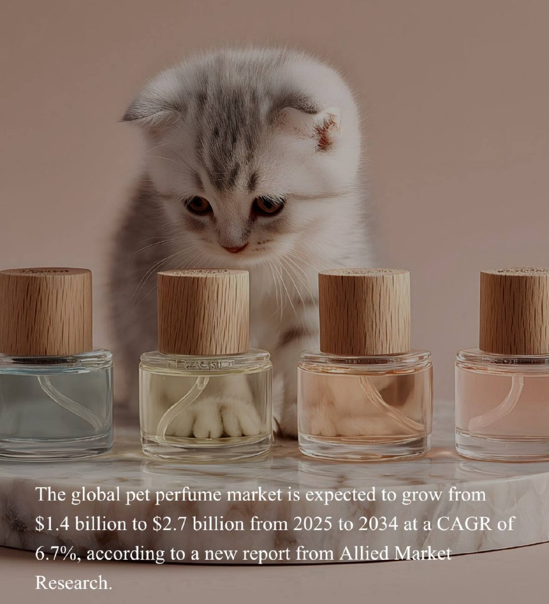 #доброеутро У вашего кота есть духи? А у пса? Даже захотелось написать «А вы душите своего кота?» Не в смысле затискиваете, пока не начнет вырываться (как я), а используете ароматы для животных. 🙀 Попалась неожиданная статистика: глобальный рынок парфюмерии для домашних животных оценивался в $1,4 млрд в 2024 году и, как ожидается, достигнет $2,7 млрд к 2034 году, что соответствует среднегодовому темпу роста (CAGR) в 6,7%. «Рост рынка обусловлен такими факторами, как гуманизация питомцев, рост спроса на премиальные груминг-продукты, популярность персонализированного ухода за питомцами и увеличение расходов на гигиену животных.» — сообщает ИИ. Вспомнила, как ровно четверть века наза писала на эту тему статью в журнал «Новости в мире косметики». Инфоповодом стал запуск аромата для собак Oh My Dog Dog Generation. Детали не помню, но легенда была в духе два друга француза решили выпустил аромат для своей любимой собаки. Конечно, никаких аллергенов для животных, проверено ветеринарами и