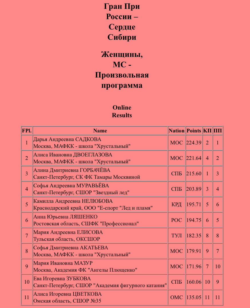 Выступления женщин получились очень эмоциональными. Автор прослезилась после выступления Дарьи Садковой, а потом после четверных тулупов Аделии Петросян. За произвольную программу Аделия получила 143.60. Баллы скромные, так как были недокруты на четверных тулупах и падение с тройного лутца.