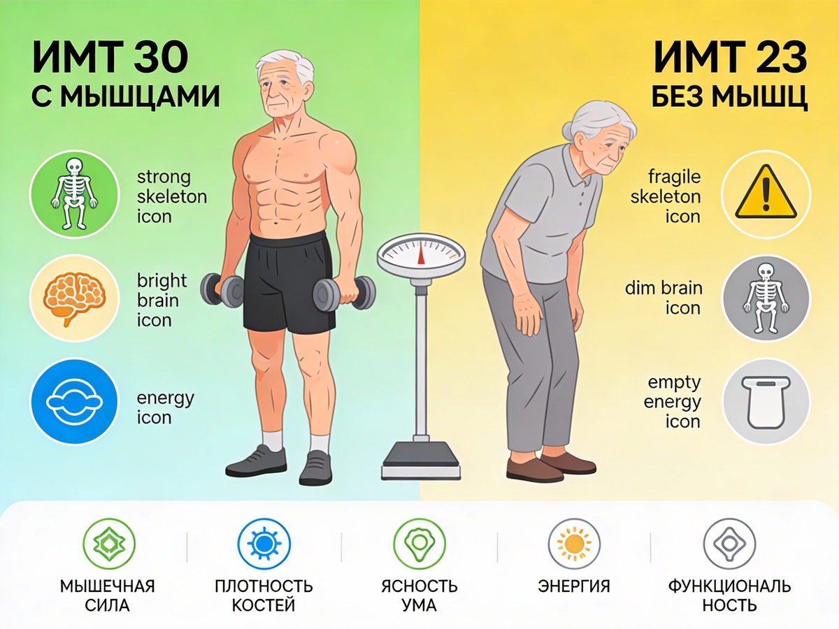 «Материалы носят информационный характер и не являются медицинской рекомендацией. При любых изменениях в лечении консультируйтесь с врачом». Забудь цифры. Включи логику. Посмотри на Арнольда Шварценеггера в его лучшие годы. Его тело было эталоном силы и мужественности. А теперь проверь математику: его ИМТ был 30.3! По меркам ВОЗ — это ожирение первой степени. Абсурд? Именно так. ИМТ — это ложный пророк. Он слеп. Он не видит разницы между мышцами и жиром. Он предлагает тебе стать дряблым и «нормальным», вместо того чтобы быть сильным и настоящим. Правильный вопрос не «Какой у меня ИМТ?», а: Выбор за тобой: быть статистической единицей с ИМТ=23 или сильным человеком с реальными результатами. Шварценеггер свой выбор сделал. А ты?