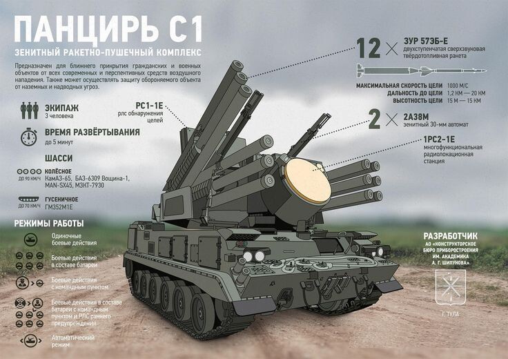 Панцирь-С1 - российский самоходный зенитный ракетно-пушечный комплекс (ЗРПК) наземного и морского базирования