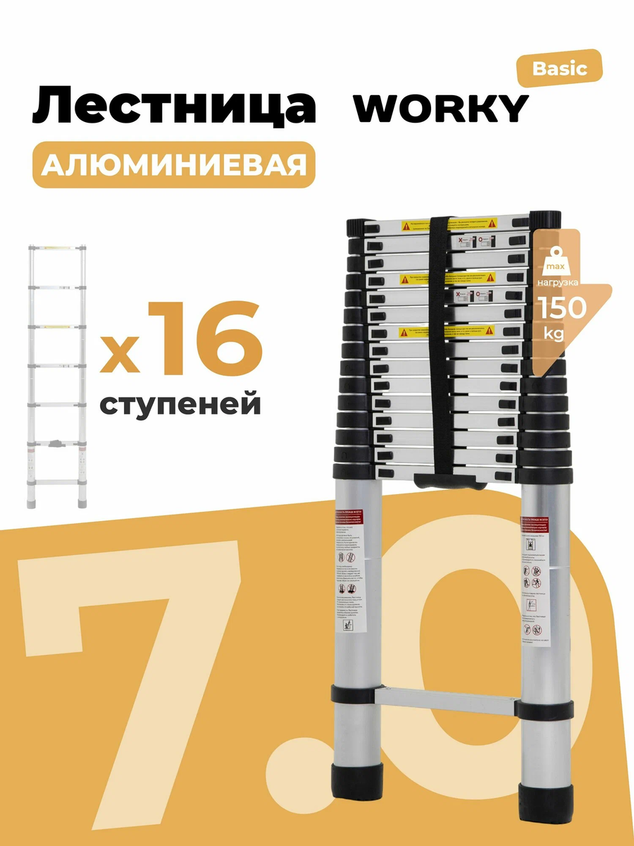 Пять интересных вещей для ремонта на Яндекс Маркете 1) Лестница телескопическая 7,0 м Лестница телескопическая WORKY предназначена для электромонтажных, строительных и ремонтных работ на высоте. Характеристики: