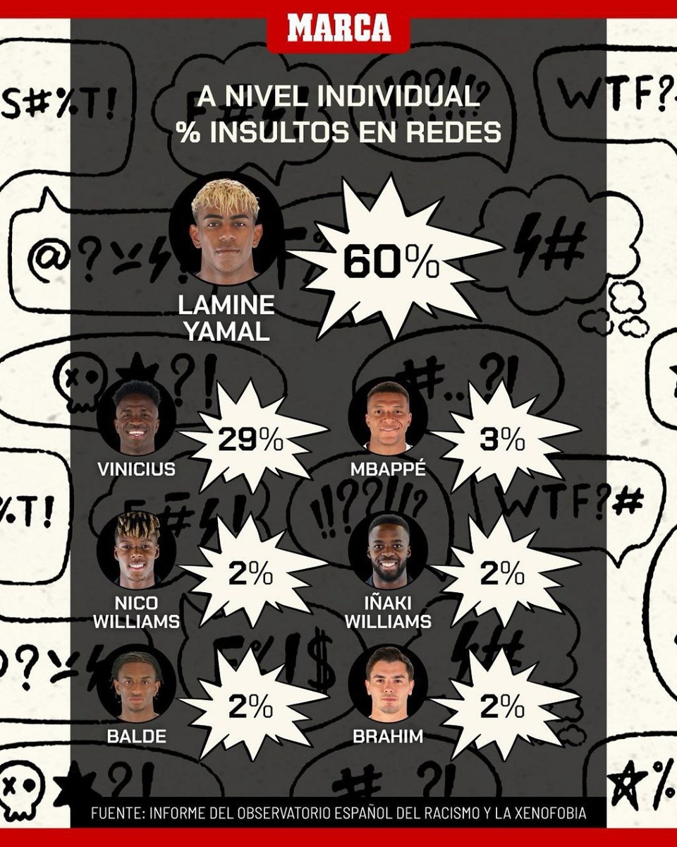 🇪🇸 Игроки LALIGA, которые подверглись наибольшему количеству расистских оскорблений в соцсетях по данным MARCA