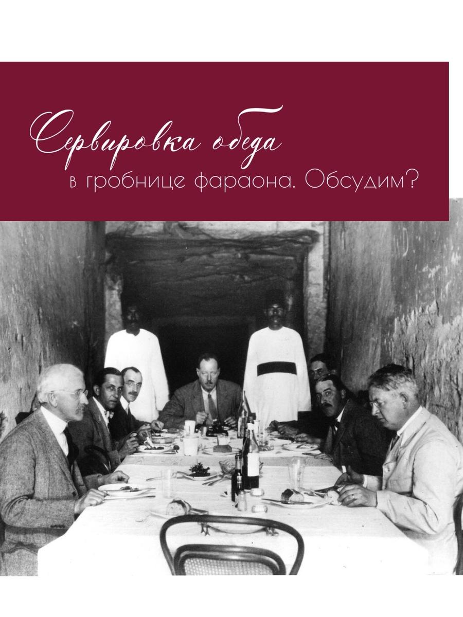 Всем привет! В 1922 году совершилось значительное событие в египтологии - археолог Говард Картер обнаружил ступени, ведущие в гробницу фараона Тутанхамона. Гробница оказалась единственной из найденных усыпальниц фараонов, почти не тронутой грабителями. Похоронная камера и другие помещения были заполнены уникальной коллекцией драгоценностей, оружия и других предметов. Общий вес найденных там золотых изделий и украшений превысил 1,2 тонны. Я вам рекомендую поискать фотокарточки этого события в интернете, они до сих пор впечатляют. Представляете, в какой эйфории были участники экспедиции. И даже устроили обед в гробнице. И я, конечно, мимо этого мероприятия пройти не смогла. Все-таки культура застолья в начале прошлого века была достаточно развита, и нам есть, что взять на заметку либо освежить какие-то свои знания. 1️⃣ На первой фотокарточке видно, что стол не застелен полностью, не было скатерти по размеру. И я предполагаю, что вместе столового текстиля взяли отрезы хлопка, в в ко