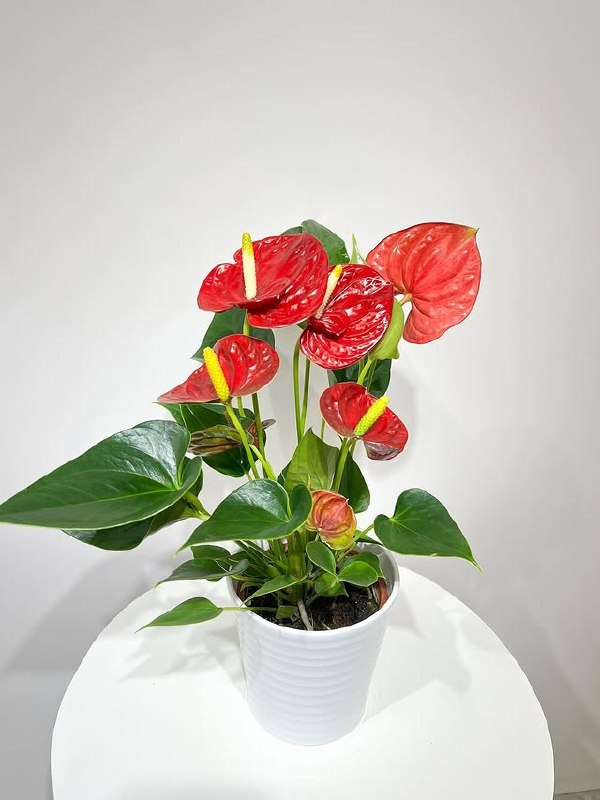 🌸 Антуриум Андре (Anthurium andraeanum) — это один из самых популярных и эффектных видов антуриума, настоящий символ тропической экзотики. Его часто называют "мужское счастье" или "цветок фламинго". Главное украшение этого растения — его яркие, глянцевые "цветы", которые на самом деле являются видоизмененным листом-покрывалом (прицветником). Благодаря активной селекции существует множество сортов антуриума Андре, которые отличаются размерами растения и расцветкой покрывала. Антуриум Андре любит утреннее/ вечернее солнце, а также влажный воздух. Для посадки используйте кислые или слабокислые, хорошо дренированные, пористые субстраты. Ведь антуриум - это эпифитное растение. Поливайте теплой водой после просыхания субстрата в верхней части.