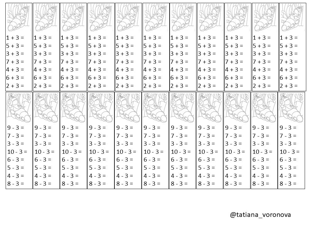 Вклейки в тетрадь (на поля) по математике +3 и -3 (по порядку и в разнобой) Файл в комментариях