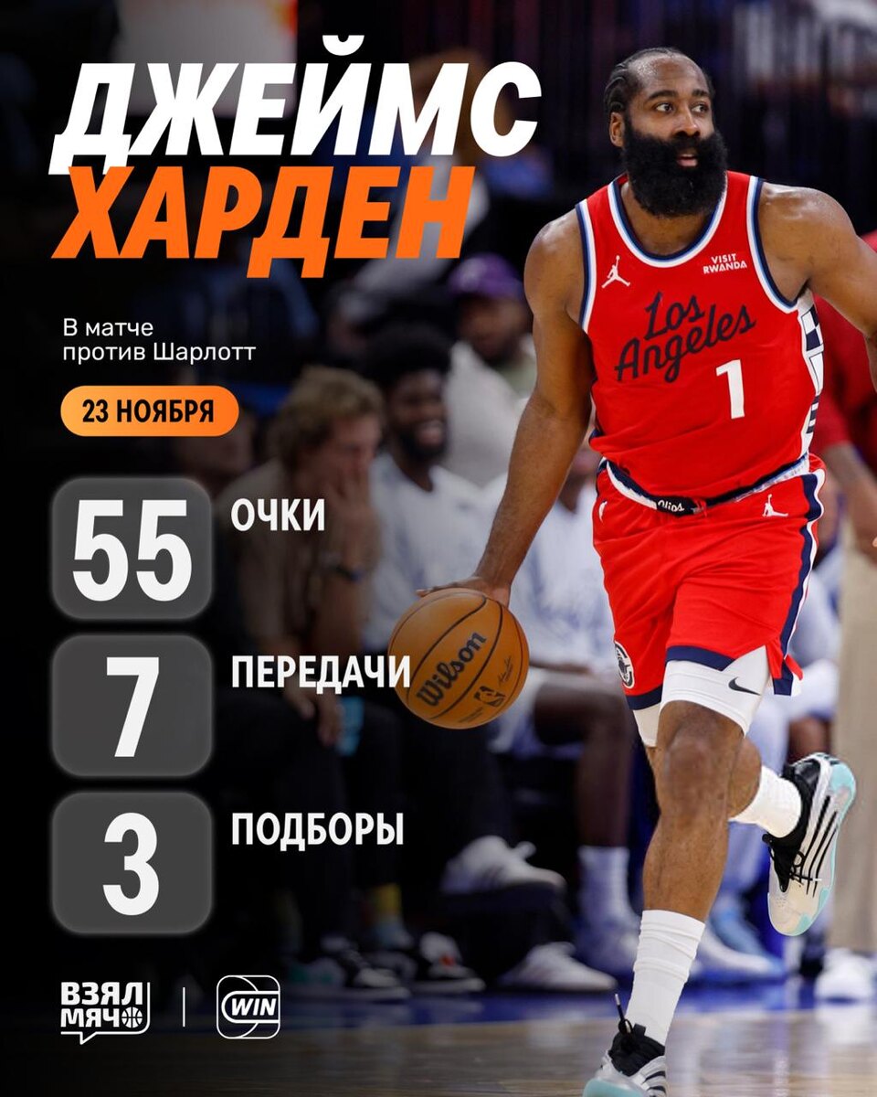 🔥 Джеймс Харден сделал разницу Защитник «Клипперс» выдал уверенный матч против «Шарлотт»: 55 очков, 17 из 26 с игры, 10 из 16 из-за дуги, 3 подбора, 7 передач, 1 перехват за 35 минут. Харден стал первым игроком в истории НБА, который установил рекорды по набранным очкам за матч в двух франшизах: 61 очко за «Хьюстон» и 55 очков за «Клипперс». Неужели мы снова видим праймового Хардена? 🏀 ПОДПИШИСЬ — ЗДЕСЬ ЖИВЁТ БАСКЕТБОЛ!