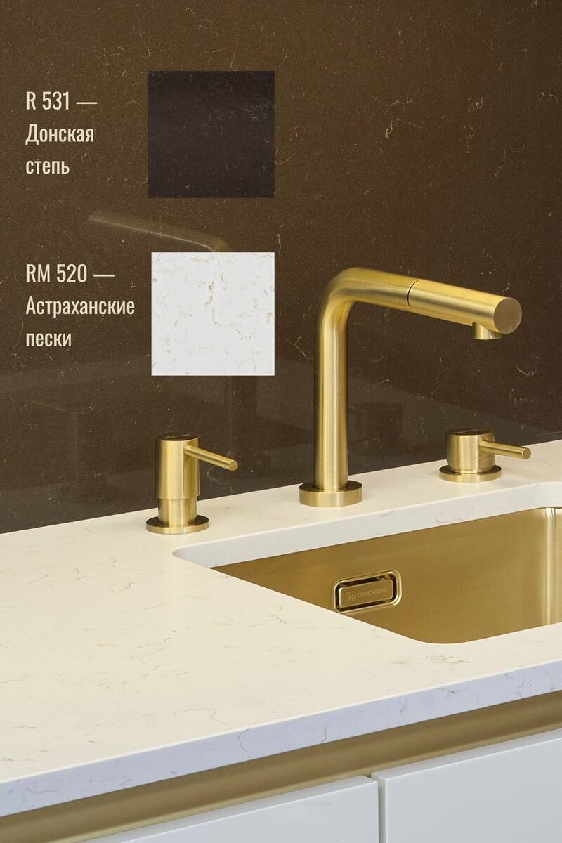В одном из наших последних проектов был использован кварц российского производства компании Аварус. Это единственный в России производитель кварцевого агломерата. В данном случае были использованы 2 интересных сочетания: Донская степь и Астраханские пески❤️ Они крайне гармонично сочетаются между собой и имеют мраморную текстуру. Использовали бы вы такие сочетания в своём интерьере❓ 🟫🟫🟫— располагаем широким ассортиментом материалов на любой вкус. Пишите в чат нашему дизайнеру для того, чтобы подобрать именно тот, который идеально впишется в ваш интерьер. ➡️ #маконти_технологии