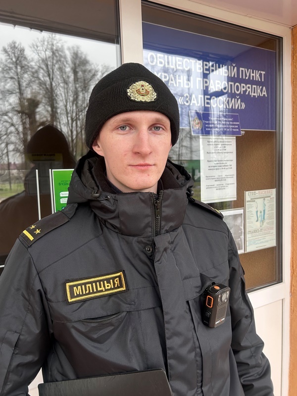 Алексей БУРКО – молодой участковый инспектор милиции. Больше года он обеспечивает охрану общественного порядка на территории Залесского сельсовета. Алексей родился в деревне Свиридовичи. Когда мальчику было 10 лет, его семья переехала в город. После окончания СШ №7 Алексей поступил в Молодечненский торгово-экономический колледж на специальность «логист». Учреждение образования посещали представители РОВД, МЧС и других ведомств, которые проводили с учащимися профориентационные беседы. Нашего героя заинтересовала патрульно-постовая служба, поэтому, получив диплом, он пошел служить в органы внутренних дел. После трехмесячного обучения в центре подготовки, повышения квалификации и переподготовки кадров МВД молодой человек в декабре 2023 года приступил к службе в Сморгонском РОВД. Свой путь в профессии Алексей Бурко начал в должности милиционера взвода патрульно-постовой службы. Спустя полгода он был назначен на должность участкового инспектора милиции. – Главная задача участкового – помог