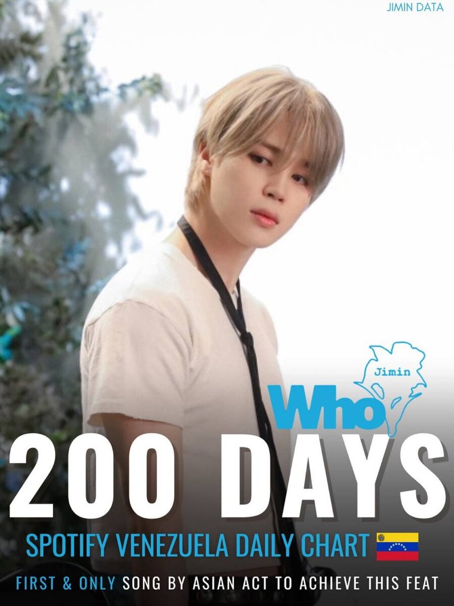 🍒 "Who" Чимина становится первой и единственной песней азиатского артиста, которая провела 200 дней на 1ом месте чарта Spotify Venezuela
