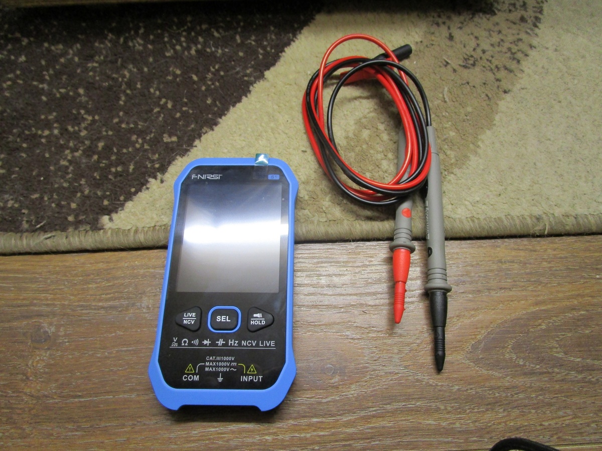 Портативный цифровой мультиметр FNIRSI S1 представляет собой инструмент для точных измерений в различных условиях. Он обеспечивает широкий диапазон измерений, включая напряжение AC/DC до 1000 В, сопротивление от 0 Ом до 100 МОм, ёмкость от 0 нФ до 10 мФ, частоту и температуру. Пользователь может выбирать между автоматическим и ручным выбором пределов измерений. Мультиметр оснащен ярким VA цветным дисплеем для удобства чтения результатов. Встроенный фонарик делает его удобным для использования в условиях недостаточного освещения. Имеет заряжаемую литиевую батарею емкостью 1000 мАч. Постоянное напряжение (DC) 1000 кГц - 10 мГц, точность ± (0,1% + 3), разрешение 1 кГц