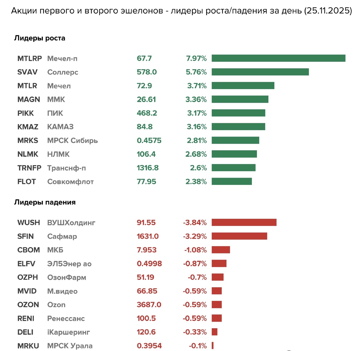 Всем привет! По итогам основной сессии 25 ноября индекс Мосбиржи прибавил 1,2%. Порассуждал, что лучше: Сегодня без покупок. Поставьте лайк и не забывайте подписываться на наш канал «Настоящий Миллионер» в телеграме, чтобы получать информацию еще быстрее, также можно поддержать автора оформив за 100 рублей в Дзене Премиум подписку., чтобы иметь доступ к закрытым публикациям. А что сегодня покупали/продавали вы?