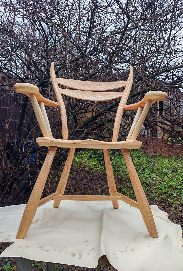 Построил я новое кресло. Вот такое получилось: Ну вот, похвастался. А теперь обо всем по порядку. Пока я делал лавку, а потом табуретку, я все время думал - какое бы такое сделать кресло, чтобы все о...ели (в хорошем смысле этого слова). Я стараюсь читать все, что пишут о том, как делать кресла. Ну и смотреть все картинки, на которых есть какие то необычные кресла. Обычно именно отсюда, из картинок, из фоток получаешь первый толчок. Первую искру, которая тебя зажжет. (надо кстати статью здесь написать о том, что и где я читаю о креслах) В данном конкретном случае было несколько таких фоток от разных креслодеревщиков. Отличные кресла. Но для меня еще рано за такие браться. Поскольку я плетеные сиденья и спинки делать пока не умею (этот навык еще предстоит изучить и освоить), я решил сделать stick&slat chair. То есть низ как у обычного stick chair, а спинка как у slat chair (slat по английски - планка, филенка). Типа как на первой фотке. Проект подстулья (форма и размеры сиденья, ра