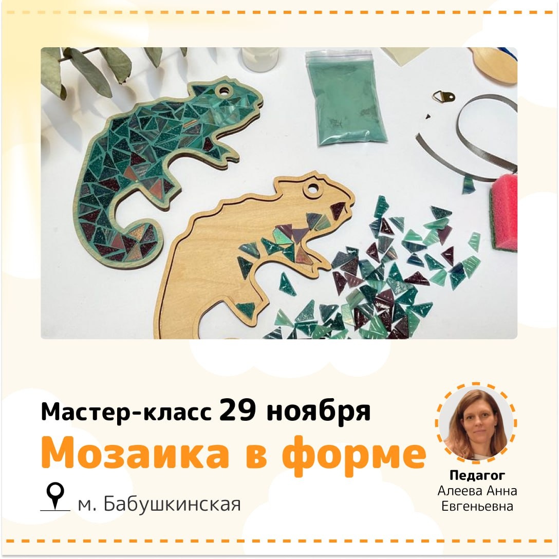 Пора творить! 🎨 Через 1,5 часа в ваших руках окажется изящная мозаика в деревянной рамке — произведение искусства, созданное вами! Это изделие станет жемчужиной вашего интерьера или самым душевным подарком. Почему это стоит попробовать? 🎨 Выберите очаровательную деревянную форму — у нас есть разные варианты! 🌈 Все материалы уже ждут включены в стоимость мастер-класса — просто приходите и творите 👩🎤 Наш педагог Анна Евгеньевна Алеева проведет вас от первой детали до готового шедевра 💫 Гарантируем море удовольствия для вас и ваших детей (5+) Когда и где творим? 📅 29 ноября (сб) в 15:00 📍 Центр «Ученый кот» м. Бабушкинская Успевайте занять свои места в нашей творческой мастерской! 👉 Забронировать место волшебника Анонсы всех активностей на нашем сайте
