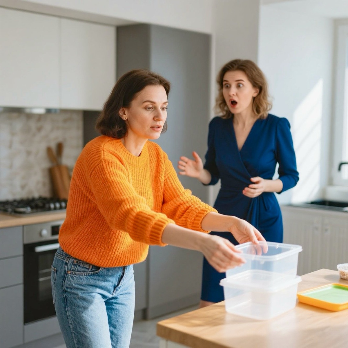Контейнеры всё ещё висели в воздухе между ними. Марина не знала, что делать. Отказать? Но это же сестра мужа. Сцену устраивать на пороге? Глупо. Она медленно взяла контейнеры из рук Светланы.
