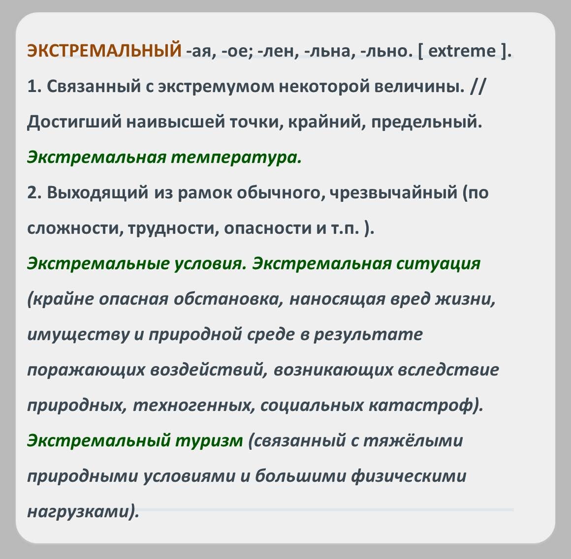 Продолжаем разговор о лжепроверочных словах. Претендентом на звание победителя в моем личном преподавательском рейтинге является слово ЭКСТРИМ. Именно его подбирают в качестве проверочного для слова ЭКСТР..МАЛЬНЫЙ большинство учеников и недрогнувшей рукой вставляют букву И. Нельзя ЭКСТРЕМАЛЬНЫЙ проверять ЭКСТРИМОМ. Слова похожи по значению, но были заимствованы в разное время из разных языков. Слово ЭКСТРЕМАЛЬНЫЙ образовалось от французского «extreme», корни уходят к латинскому «extremus». Написание через е этимологическое, то есть воспроизводит написание слова в языке-доноре. А ЭКСТРИМ образовано от английского extreme 'крайний, предельный, экстремальный'. И это слово появилось в русском языке совсем недавно. Его даже еще в толковых словарях и в словаре иностранных слов нет. Таким образом, слово ЭКСТРЕМАЛЬНЫЙ не является производным от ЭКСТРИМ. Школьникам предлагаю связать слово ЭКСТРЕМАЛЬНЫЙ с математическим термином «экстремум функции», а ЭКСТРИМ вообще выкинуть из информационно