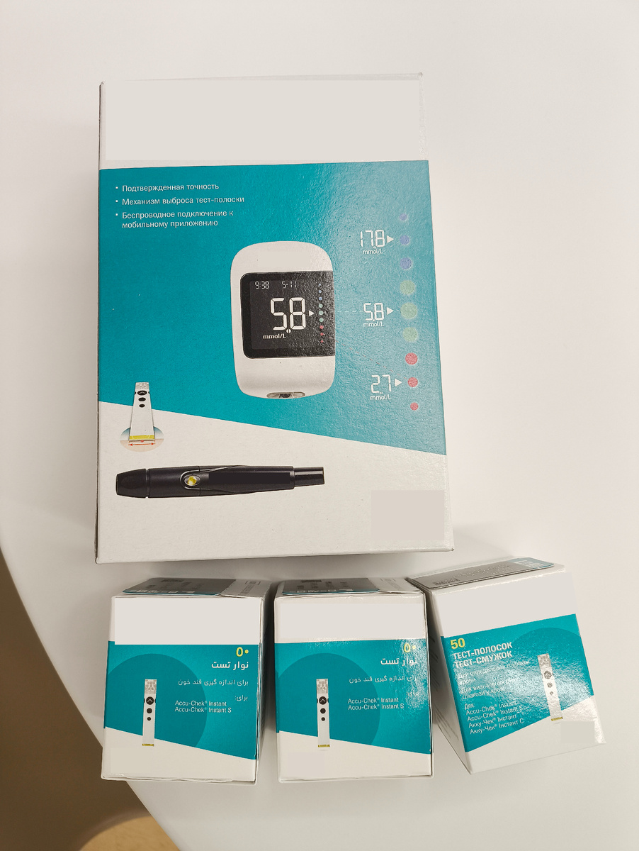 1. Извлечение из коробки: глюкометр, иголочки в пакете, коробочка с тест-полосками, аппарат-ручка для прокалывания. Лучше на чистый стол при нормальном освещении.