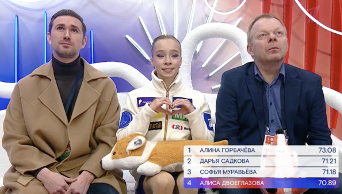Заключительный этап гран-при по фигурному катанию в Омске преподнес поклонникам фигурного катания сюрприз в женском одиночном катании. Думаю, что мало кто мог предположить, что после завершения коротких программ ученица Этери Тутберидзе Алиса Двоеглазова будет занимать только 4 промежуточное место. Сама спортсменка однозначно не ожидала подобного развития событий. В "киссэндкрай" она натянуто улыбалась, показывая своим поклонниками сердечки. Тем не менее отставание от фигуристки занявшей первое место в короткой программы было минимальным. Чуть больше двух баллов. Для обладательницы четверных прыжков такой отрыв легко можно компенсировать в произвольной программе. И баллов, которые Алиса получила за свою произвольную программу, действительно хватило для того, чтобы по итогам двух программ обойти лидера короткой - Алину Горбачеву. Но вот Дарью Садкову Алиса обогнать не смогла. Еще на контрольных прокатах я отмечала в какой звенящей форме находится Алиса Двоеглазова. Все в ее катании кр