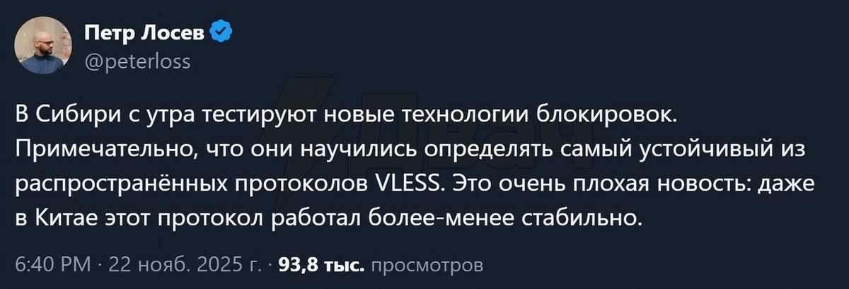 🔗 Путин и Росомнадзор начали блокировать в России популярный VPN-протокол XRay/VLESS