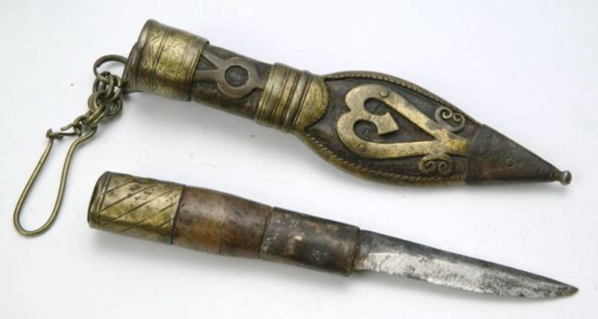 - В музеях сохранились ножи как с одной, так и с двумя парами ножен
