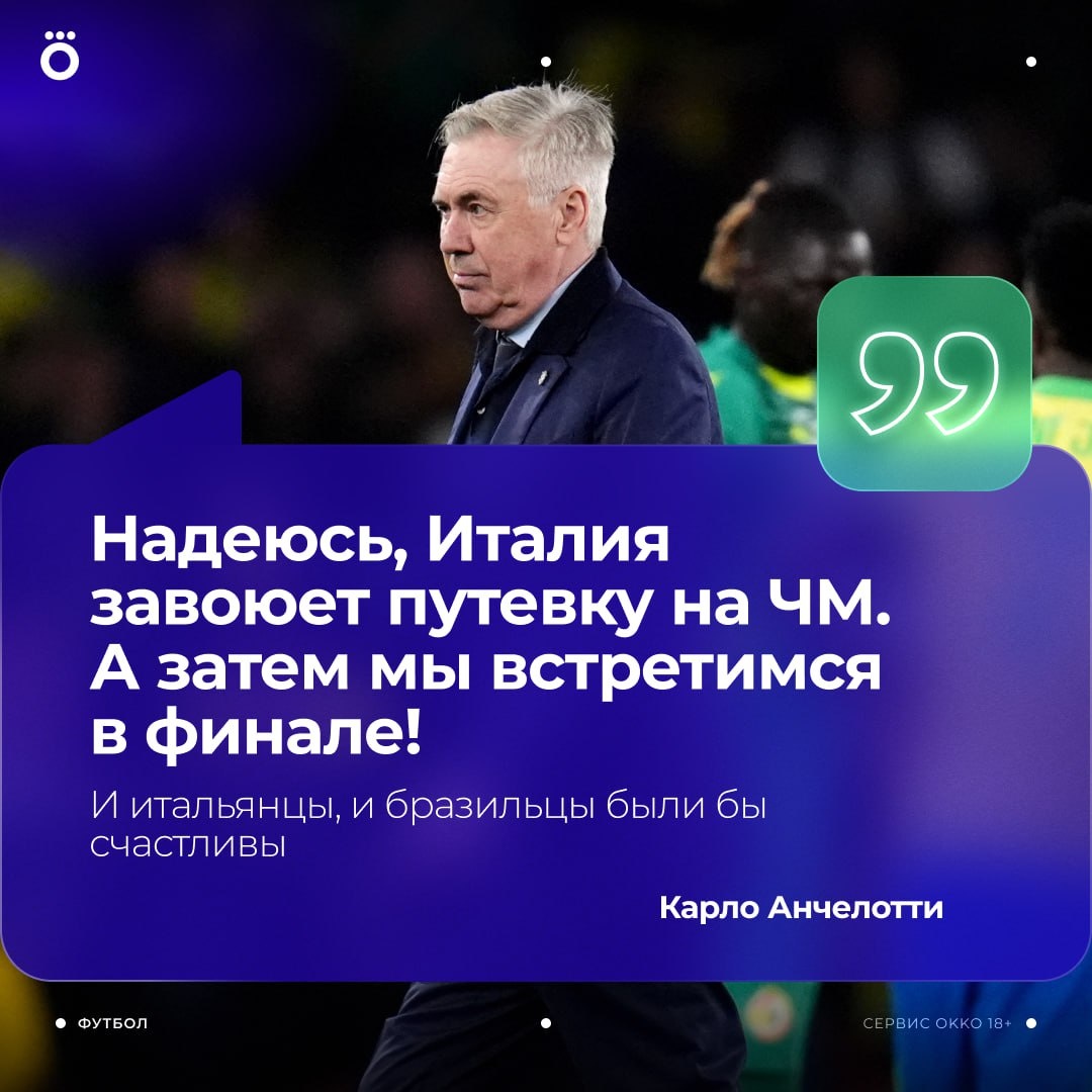 👀 Идеальный финал ЧМ-2026 для Анчелотти — матч Италии и Бразилии.