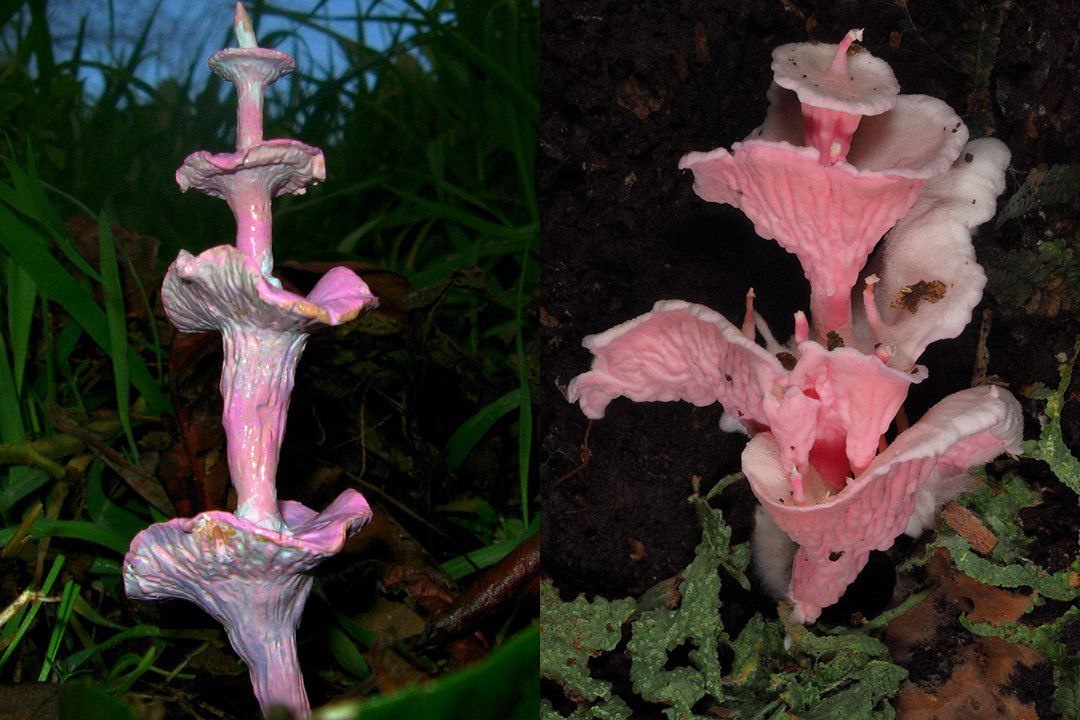 ⠀⠀ ⠀ ⠀ ⠀⠀Этот открытый в 2012 году гриб, действительно, очень необычен. Его плодовое тело имеет нежно розовый цвет, и форму, напоминающую многоярусную пагоду, с неровными и загнутыми наверх краями "крыш", как если бы её проектировал Антонио Гауди. ⠀ ⠀⠀Гриб получил видовое название Podoserpula miranda, что можно приблизительно перевести с латыни как "змееножка восхитительная". ⠀ ⠀⠀Пагода Барби была обнаружена в лесу, состоящим из "резиновых дубов", деревьев которые на самом деле не дубы, а ближе к эвкалиптам, и имеют тёмно-красную древесину и тягучую смолу, напоминающую каучук, за что и были названы "резиновыми". ⠀ ⠀⠀Это единственные деревья под которым находят пагоды Барби, поэтому в данный момент считается, что оба вида находятся в симбиотических отношениях. ⠀ ⠀⠀Примечательно, что все виды рода Podoserpula имеет подобное пагодообразное строение. А ещё более примечательно то, что род немногочисленный, но при этом широко распространённый по миру: один вид обитает в Бразилии, другой – н