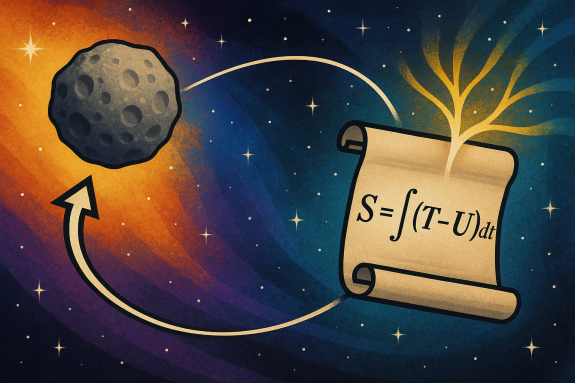 - Подход на основе действия (Телеологический): «Природа «выбирает» такую траекторию x(t), для которой интеграл S = ∫(T - U)dt (действие) стационарен. Камень как бы «просчитывает» весь свой путь от начала до конца, чтобы минимизировать эту абстрактную величину.»