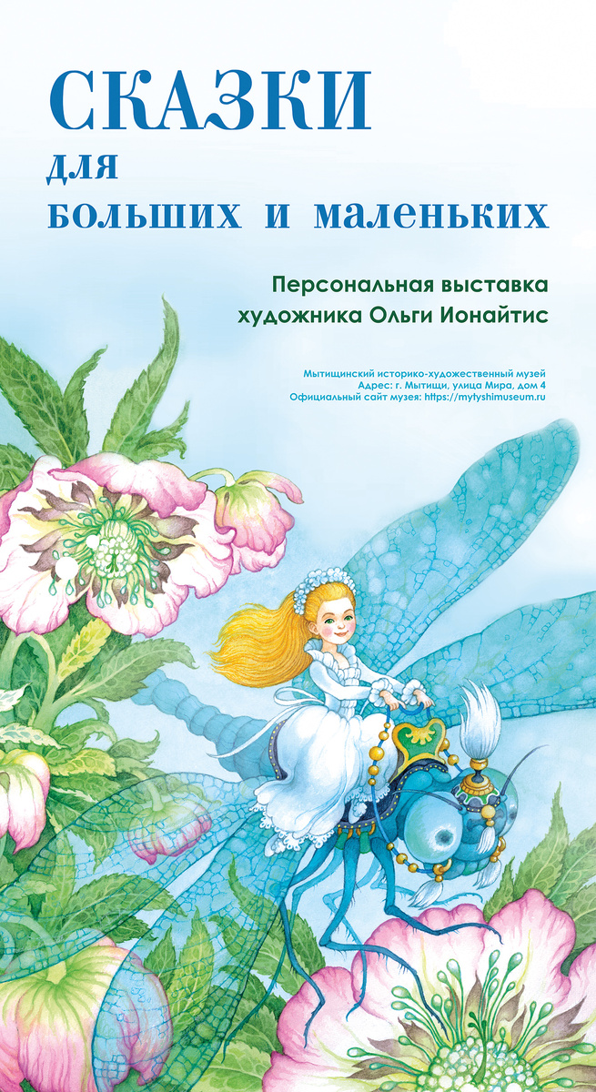 С 26 ноября 2025 года в Мытищинском историко-художественном музее работает Персональная выставка Ольги Ионайтис «Сказки для больших и маленьких», приуроченная к юбилею художника. Творческая встреча с автором состоится в День рождения музея 4 декабря 2025 года в 16.00. С 26 декабря 2025 года в Мытищинском историко-художественном музее можно посетить выставку «Сказки для больших и маленьких». Это персональная выставка художника-иллюстратора Ольги Ионайтис, члена Союза художников России, Московского Союза художников, Ассоциации мытищинских художников, лауреата премии Президента РФ в области литературы для детей и юношества за 2024 г. На ней будут представлены иллюстрации к произведениям С.Маршака, К.Грэма, С.Джеймисон, Г.Х.Андерсена, норвежским сказкам, а также несколько станковых работ, нарисованные за последние пять лет. Это стало доброй традицией для Ольги Ромуальдовны и музея: каждые пять лет художник отчитывается перед гостями и жителями города Мытищи о проделанной работе. Нынешняя