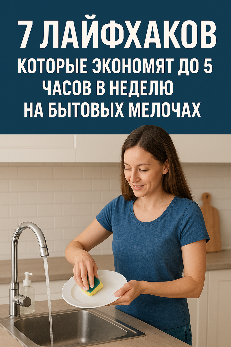 Знакомо чувство, когда день прошёл, а вы устали так, будто разгружали вагоны? И при этом ничего «особенного» не сделали? Всё дело в мелких бытовых задачах: они незаметно съедают часы, энергию и настроение. Хорошая новость: быт можно упростить. Ниже- 7 практических приёмов, которые помогут вам освободить до 5 часов в неделю без героизма и марафонов. Главная ошибка - мыть по одной тарелке в течение дня. Рабочая схема: Используйте правило: не больше 10 минут за подход. Таймер делает чудеса - мозг начинает работать быстрее и точнее. И ещё лайфхак: пока закипает чайник или греется ужин - мойте посуду. Совмещение экономит десятки минут. Вы берёте вещь, кладёте её на стол. Потом снова берёте и относите на место. Это двойная трата времени. Правило простое: