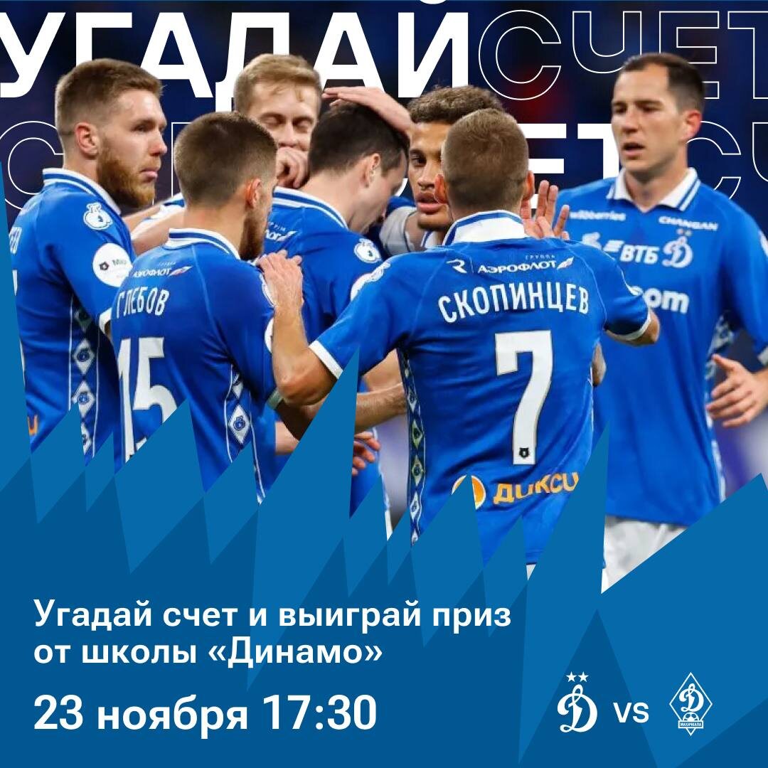 День матча — встречаемся с махачкалинским «Динамо» на домашнем стадионе 🔵🔵 Динамо 🆚 Динамо Махачкала ⚽️ 17:30 🏟 «ВТБ Арена» 📺 Матч Премьер Угадайте счёт матча и получите приз от школы ФК «Динамо» (Москва)! Ждем ваши варианты в комментариях👇