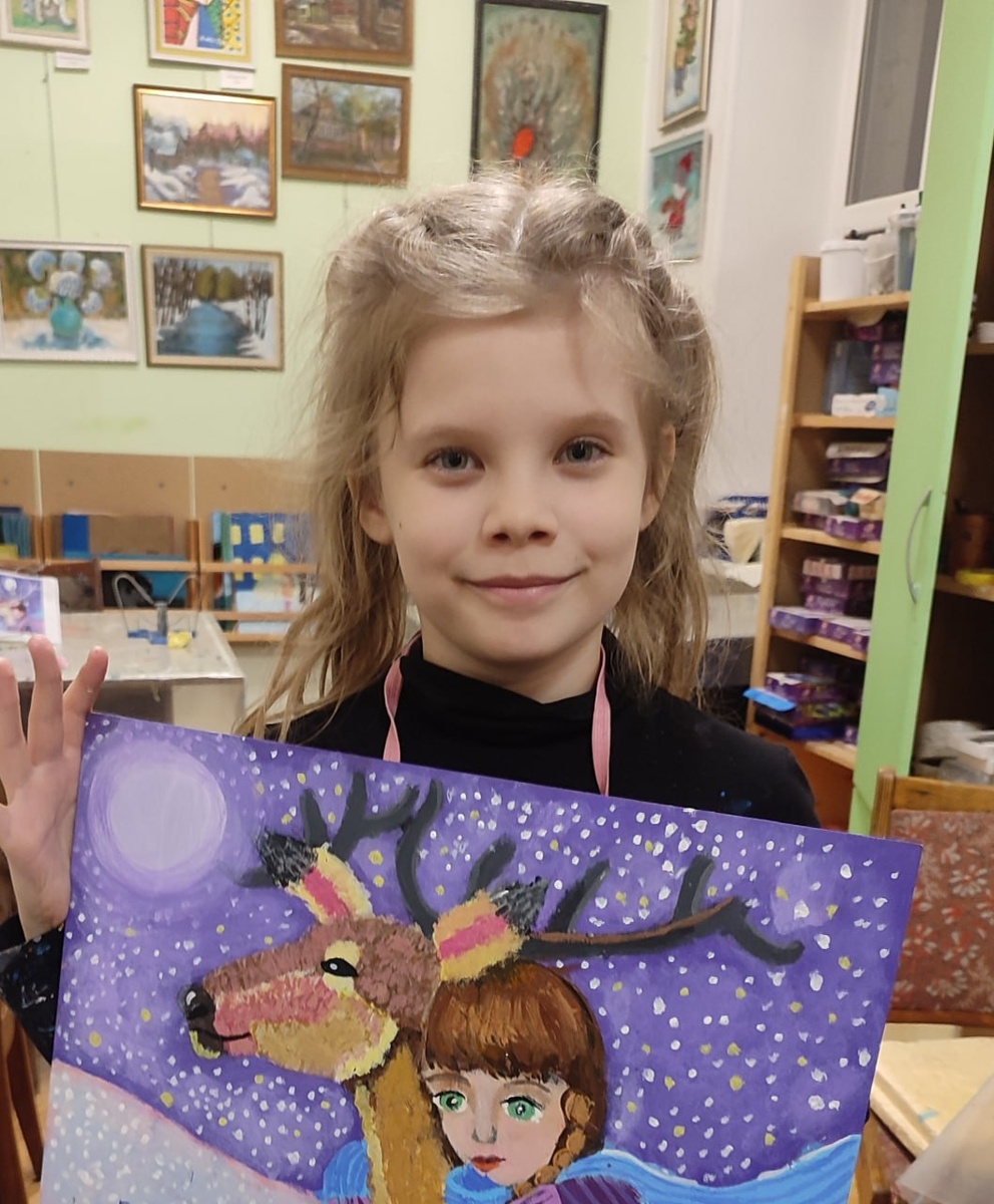 #ХиК: Любовь Бирюкова Интервью с одним из победителей конкурса «Хобот и Кисточка: Книжные герои» — Любовь Бирюкова Любовь заняла третье место в возрастной группе 10-11 лет с работой Сказка моего детства. 1. Как давно ты занимаешься рисованием? Я занимаюсь рисованием с 6 лет. 2. Что тебя вдохновило нарисовать свою конкурсную работу? Мой любимый мультик и его герои (Снежная королева). 3. Сколько времени заняла работа и что было самым сложным/самым приятным? Работа заняла 1.5 месяца. Самое сложное это прорисовка шерсти и волос героини. 4. Как ты выбираешь, что рисовать дальше? Меня вдохновляют познавательные фильмы и все, что меня окружает. 5. Есть ли у тебя любимые, сюжеты или персонажи? Петух из мультфильма «Петя и петушок». 6. Кто тебя поддерживает в творчестве? Мои родители. 7. Что бы ты посоветовал(а) другим детям, которые только начинают рисовать? Учиться и верить в себя и свои силы. 8. О чём мечтаешь как художник(ца) — что хочешь создать в будущем? Запомниться людям своим творчес
