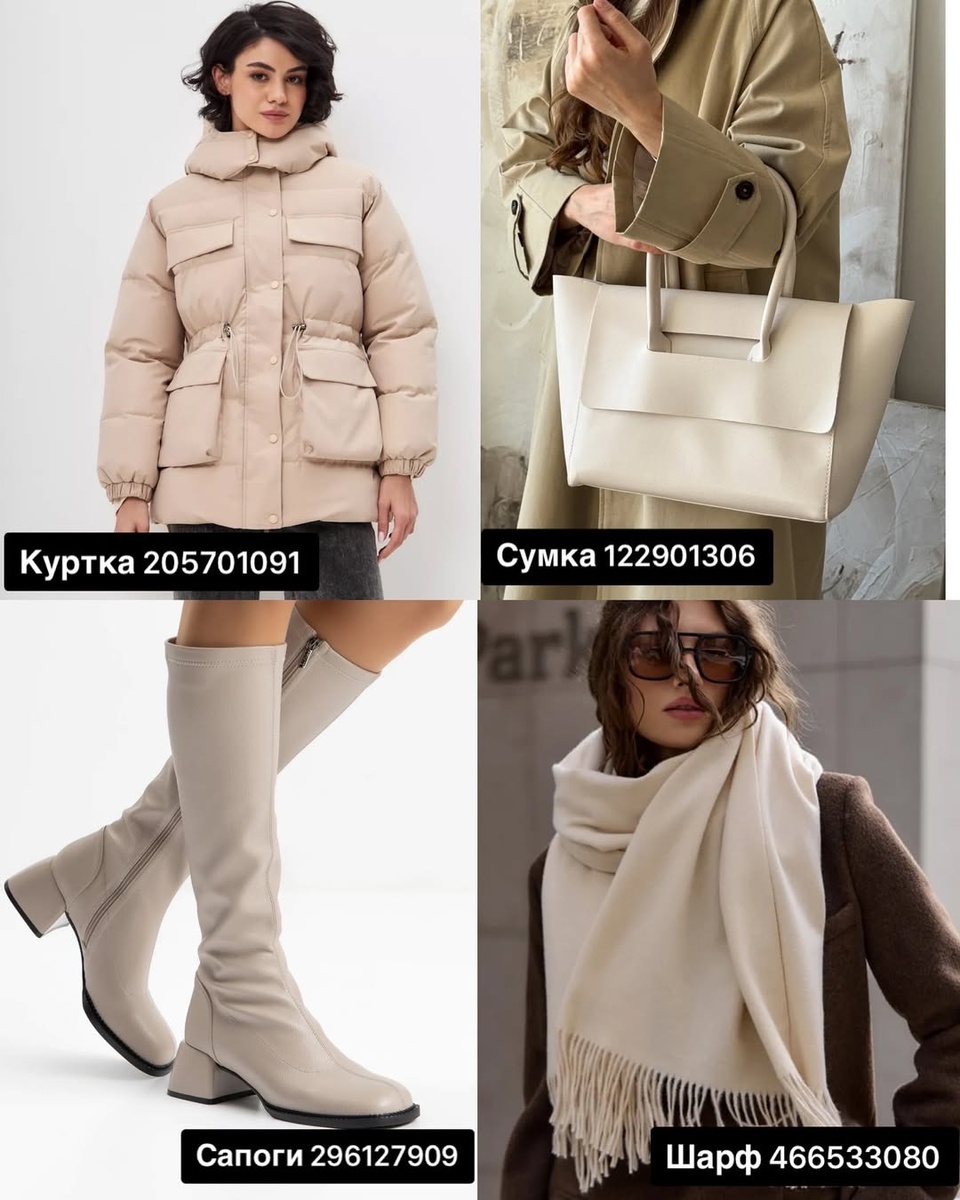 Зима и ранняя весна — время, когда одежда становится не просто защитой от холода, а выражением вкуса и индивидуальности. В этот период особенно хочется чувствовать себя уютно, но при этом выглядеть аккуратно, современно и эстетично. Две подборки, представленные на фото, — пример идеального сочетания комфорта и стиля. Каждая вещь — продуманный элемент, который легко вписывается в повседневные образы и помогает создать цельный, модный комплект. Ниже — подробный разбор всех предметов строго по порядку с артикулами, описаниями и советами стилиста. I. Светлая подборка — нежные бежевые тона и чистая эстетика Эта куртка выполнена в мягком сливочно-бежевом оттенке, который будто подсвечивает лицо и создаёт ощущение тепла. Модель объёмная, с подчёркнутой линией талии благодаря регулировочным шнуркам — это позволяет адаптировать посадку под любую фигуру. Большие накладные карманы добавляют практичности, а высокий воротник-защитник обеспечивает комфорт даже в ветреную погоду. Совет стилиста: Соч