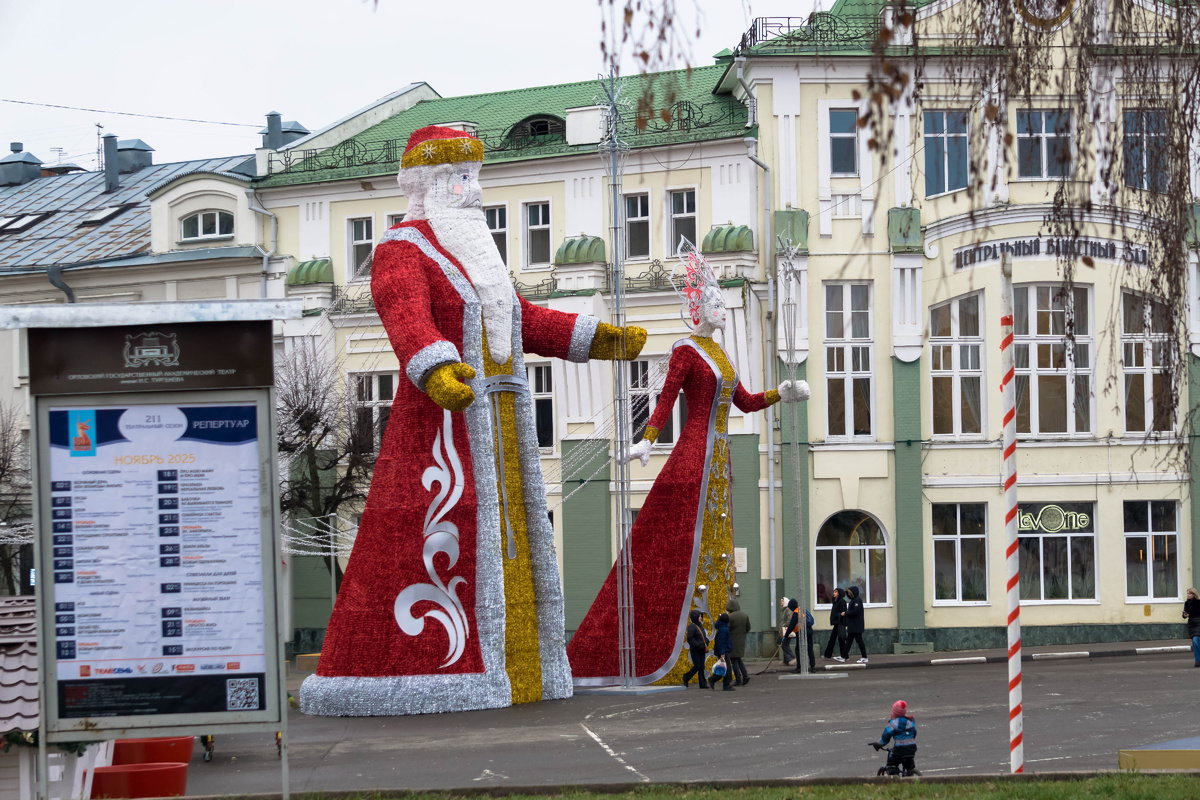 Сначала воздвигли конструкцию девичьей фигуры без головы. Вид был пугающим. Установить фигуру сразу с головой не получилось. Наконец она появилась, но с мужским лицом. Потом на неё надели кокошник, а в руку дали посох. В предыдущей публикации я задавала вопрос, показав часть конструкции. Это начало чего? В основном в комментариях предполагали, что это будет огненная лошадь. Похоже, судя по объёмному низу, установленному на узкой улице. Оказалось, что это снегурочка. Это позже лицо подрисовали, и оно стало похожим на женское. Но несколько дней девичья статуя с неприятным мужским лицом будоражила жителей. Я сама не догадалась, что это за фигура, если бы не активное обсуждение этой новогодней статуи в соцсетях. Снегурочка в красном наряде, украшенном золотом, да ещё с посохом, как-то не вязалась в моем осмыслении. Когда впервые увидела во весь рост, решила, что это образ сильной русской девушки, поэтому и с посохом в руках. Но непонятно было, почему с лицом мужским изобразили. Оказало