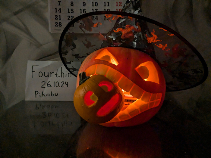 Решил я как-то в прошлом году поучаствовать в конкурсе от Клуба АДМ «Хеллоуинская резня» 2024 (давно хотел попробовать сделать из тыквы что-нибудь интересное, а тут и повод подоспел), да так получилось что выиграл его... Получив подарок от организаторов, хотел сразу отчитаться о подарке, но не стал сразу его распаковывать, так как предстоял переезд, и чтобы подарок случайным образом не испортился в процессе, было принято решения собирать его уже в новом месте. Между тем 2024 год сменил новый 2025, да и он уже во всю подходит к концу, но с переездом всё не срасталось, и уже даже состоялся тот же конкурс в этом году. Но наконец-то настал этот момент, когда я смог завершить начатое в прошло году и закрыть этот гештальт! Распаковав подарок, обнаружил там такую красоту (были ещё конфеты, но они почти сразу были уничтожены детской половиной моей семьи). Процесс сборки был быстрым и интересным. В итоге получилась такая красота. И конечно же освободил место на книжной полке. Спасибо клубу АДМ