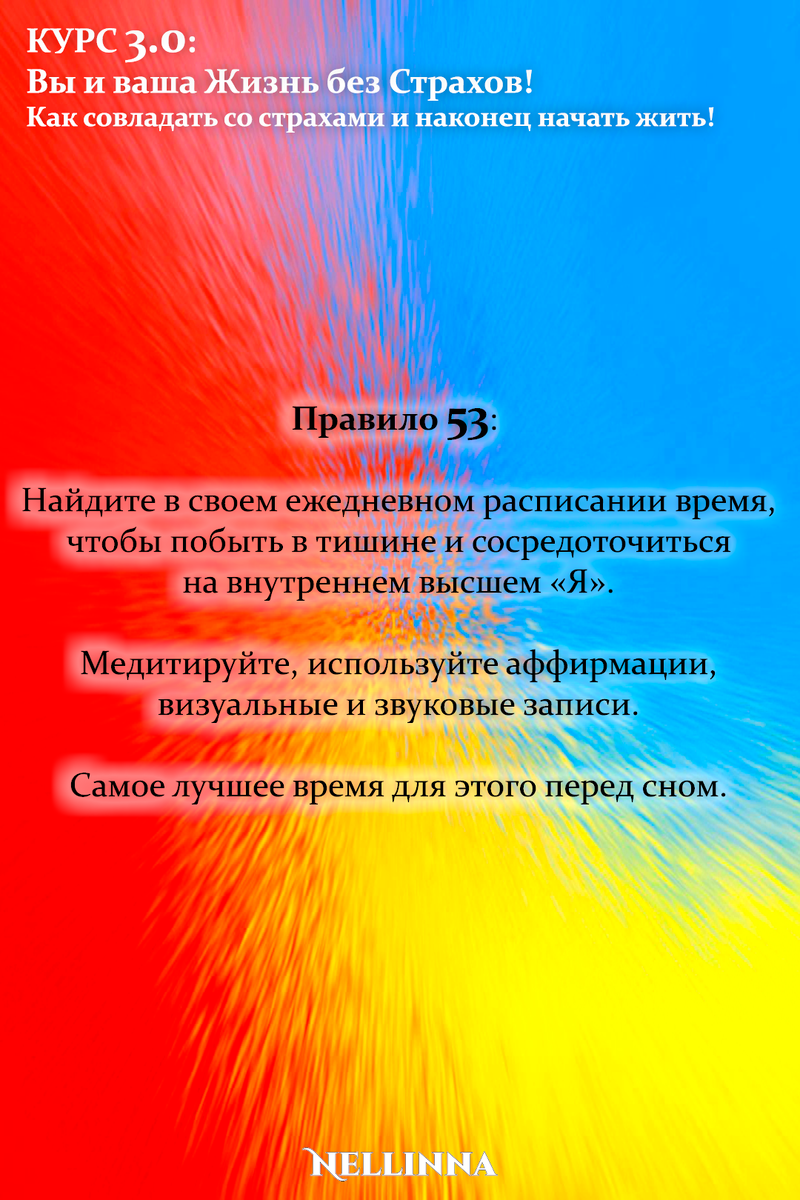 Продолжение - Принцип 53: Расстраиваясь, вы тем самым отказываетесь впустить в свою жизнь изобилие вселенной и вашего высшего «Я». Если же вы в потоке, настроены и сконцентрированы, то ощущаете себя прекрасно в единении с Вселенной. А если вы не будете подолгу и сознательно сосредотачиваться на своей духовной стороне, вы никогда не испытаете истинной радости, чувства единения, спокойствия и удовлетворения. Научитесь подключаться к источнику энергии – т.е. к вашим внутренним силам. Чтобы не пропустить следующую публикацию – Подписывайтесь! И делитесь полезной и бесплатной информацией! #курс #тренинг #обучение #практикум