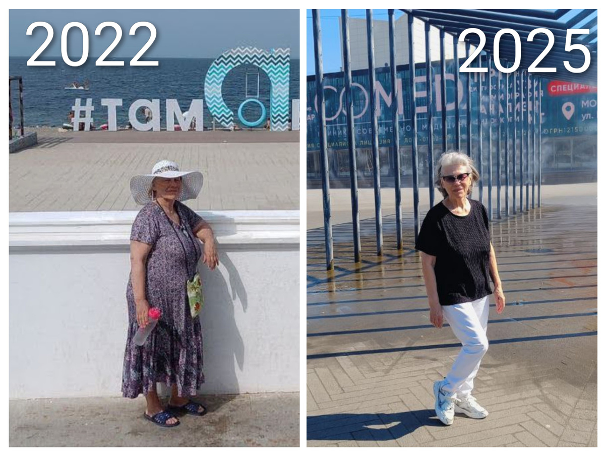 Этот путь длился два с половиной года и был непростым, но чрезвычайно важным для меня. Благодаря упорству, правильному питанию и изменению образа жизни, я смогла добиться значительных результатов — сегодня я чувствую себя намного лучше и увереннее.