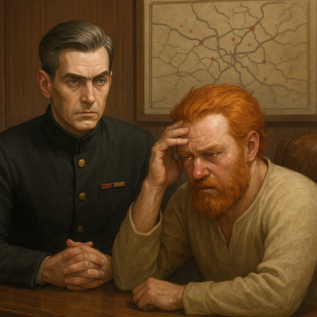 - Надеяться остаётся только на кинологов, - сказал наместник, указывая на карту. - Их собаки умеют брать след, но… - он тяжело вздохнул и посмотрел в окно. Дождь усиливался, барабаня по ставням. - В такую погоду толку от них будет мало. След быстро смоет, и задача станет почти невыполнимой.