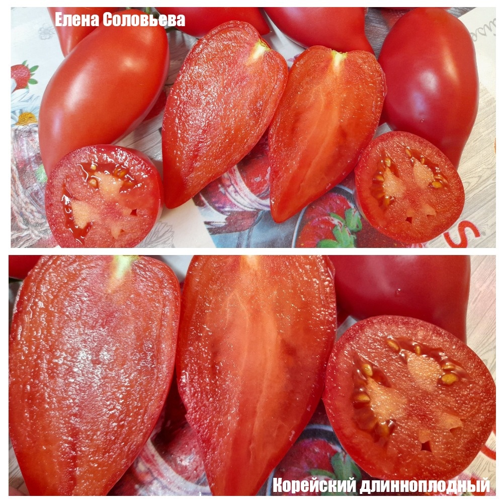 ❤ЛЮБИМЫЕ СОРТА Томат Корейский длинноплодный❤ Без этого томата свой помидорный сезон не представляю, на повторе уже много лет. В спелом виде (помидорки) покупатели мои его очень любят и в этом году он был хитом, многие просили его положить при повторной покупки у меня помидор. Среднеспелый, индетерминантный, кистевой и очень урожайный сорт☺ В высоту у меня вырос 2 метра, после чего я ему убрала макушку, думаю мог бы и дальше расти, поэтому делаю вывод что он очень понравится тем, кто живет в регионах где долгое лето💪 Куст с обычной, длинной, тонкой, поникшей листвой, выращивала в два стебля, ощущение что этот томат болеет так как он малооблиствен и как будто вялый, но это сортовая особенность. В кисти у меня по 4 плода весом от 100 до 150 грамм, помидорки внутри без пустот, мякоть сахаристая, очень сочная, мясистая, плотная,вкус нежно сладкий с еле уловимой кислинкой, запах немного фруктовый. Встречаются отдельные плоды до 300 грамм. Форма у плодов вытянутая, перцевидная с ярко выраже