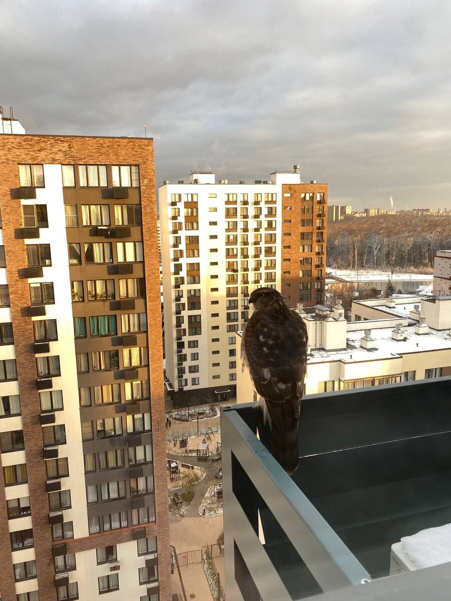 У нас в Новой Москве очень много леса, город фактически соседствует с огромным количеством разной живности. Белки бегают по ЖК постоянно, лисы частенько забегают на территорию. Вот еще ястребы прилетают к соседям ;))) В свое время именно из-за присоединения Новой Москвы город резко улучшил статистику по озеленению, хотя формально ничего не поменялось.