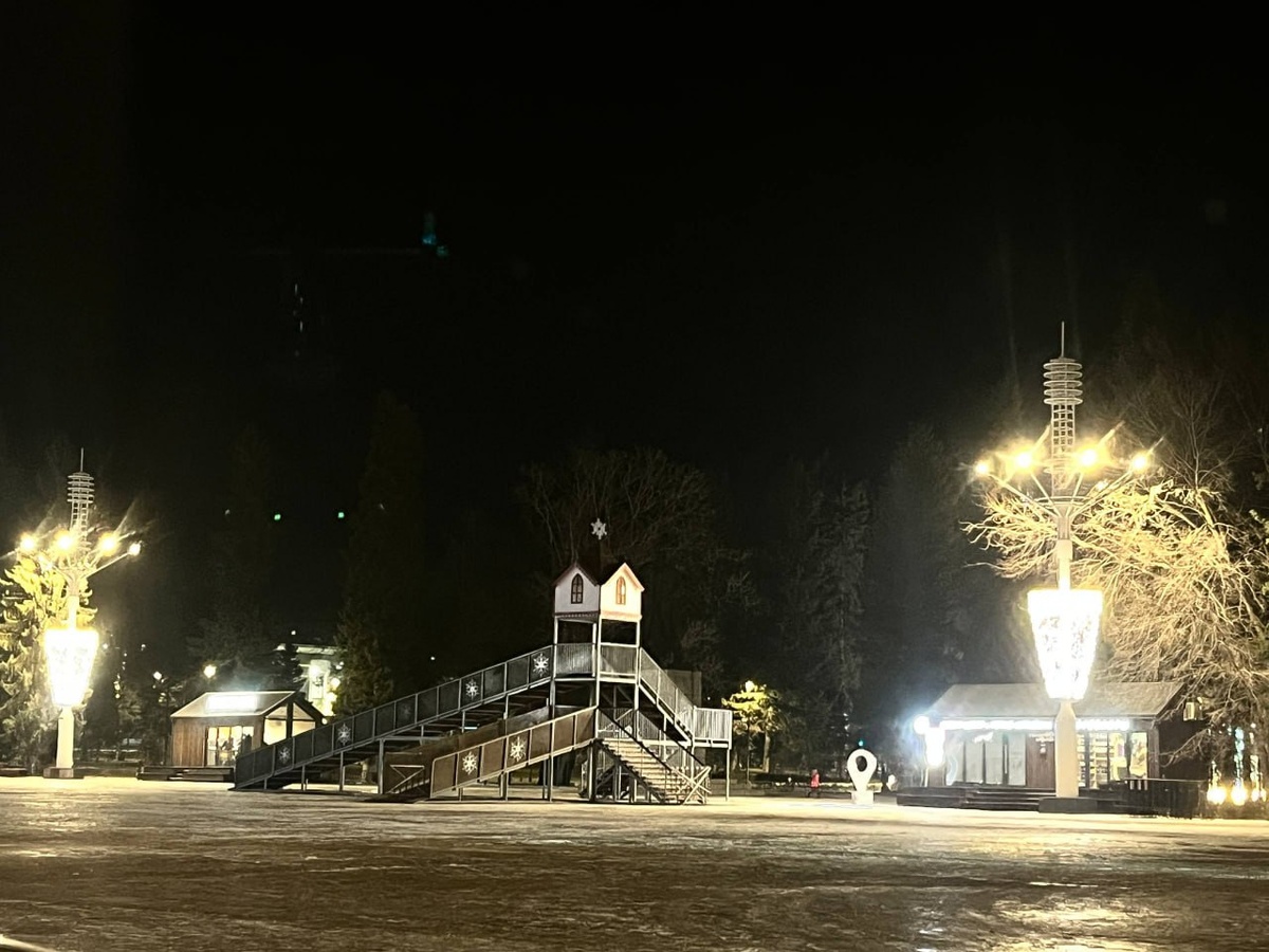 А на площади уже горку поставили