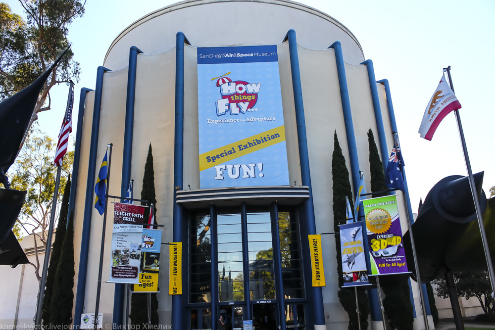 Музей был основан 12 октября 1961 года и открыт для публики 15 февраля 1963 года в здании Food and Beverage Building, которое было построено в 1915 году для Панамо-Калифорнийской выставки. В 1965 году музей был перемещен в более крупное здание Electrical Building. 22 февраля 1978 года это здание и музей были уничтожены в результате поджога. Было уничтожено более пятидесяти уникальных самолетов, а также обширная коллекция артефактов и архивов. Музей вновь открылся с меньшей, но растущей коллекцией в бывшем здании Ford Building в Balboa Park, которое было построено для Калифорнийской тихоокеанской международной выставки 1935-36 годов. Это произошло 28 июня 1980 года, а в 2005 году музей стал филиалом Смитсоновского института.