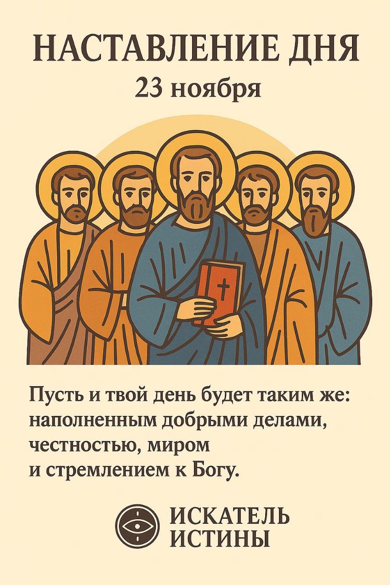 ☦️ Наставление дня — 23 ноября Память апостолов от 70-ти: Ераста, Олимпа, Родиона, Сосипатра, Куарта и Тертия Эти святые апостолы несли свет Христов в самые разные города, утверждали веру словом и примером жизни, не искали славы, но служили с любовью и посвящением. Пусть и твой день будет таким же: наполненным добрыми делами, честностью, миром и стремлением к Богу.
