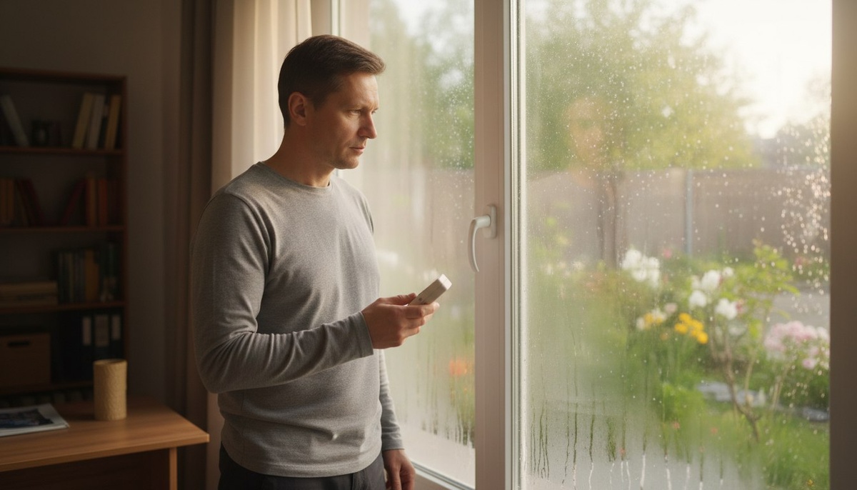 Запотевшие окна — один из самых частых поводов для звонков мне осенью. Люди говорят: «Окна новые, профиль дорогой, стеклопакеты тёплые — но каждое утро стёкла мокрые».