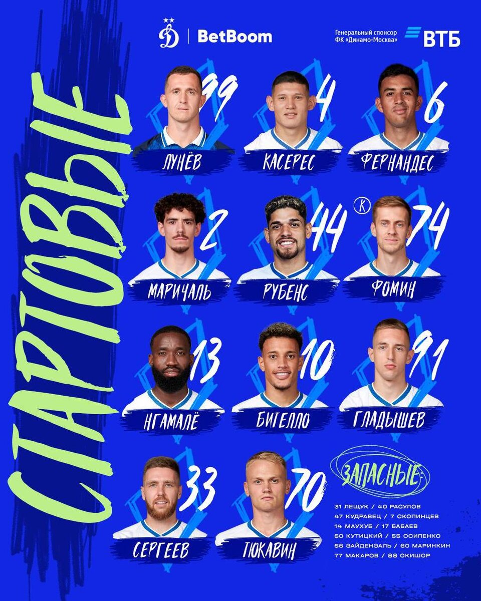 4-4-2 с Фоминым и Бителло в центре поля. Лунев в воротах…. Верните Расулова! Осипенко, прости за все. Но лучше ты, чем Фернандес 🙏 Ознакамливаемся с составами #ДинамоМскДинамоМх ⚽️ Подписывайтесь на БуДсу