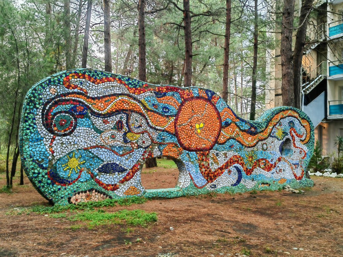 Забавные и красивые мозаичные панно в Пицундском заповеднике 🐙🐠